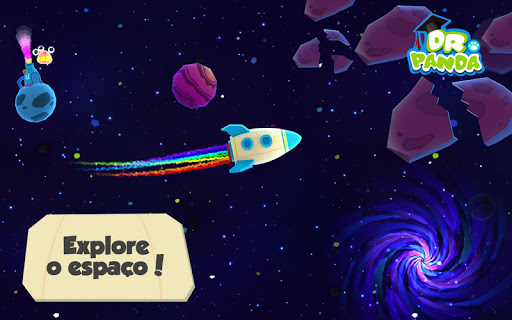 Depois de deixar sua própria espaçonave do seu jeitinho e ligar os motores, escolha o destino que quiser! Explore o espaço e descubra asteroides, novos planetas e, quem sabe, até mesmo um buraco negro?! Qual seu próximo destino com o Dr. Panda? Você decide!