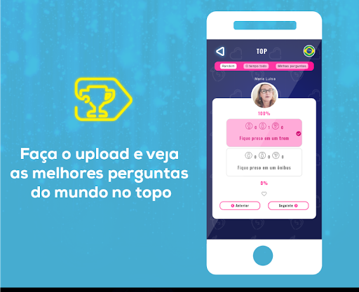 • 🏆 Modo de jogo, superior. Cadastre-se, crie e pontue as melhores perguntas do mundo!