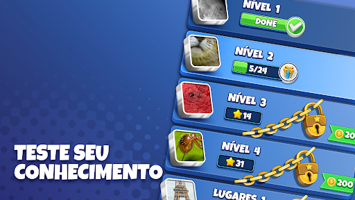 Não apenas oferece uma ampla gama de níveis de dificuldade, mas também inclui diversas categorias para escolher, incluindo música, filmes, esportes e muito mais. Isso significa que, independentemente dos seus interesses, você poderá encontrar fotos para adivinhar pelas quais é apaixonado.