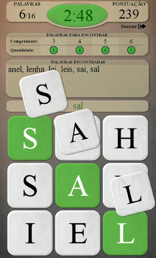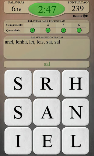 - Encontrar todas as palavras escondidas no quadro, usando as letras disponíveis.