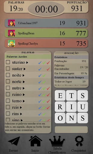 - Pode enviar os seus comentários: Apesar de tentarmos sempre fazer o nosso melhor, obviamente, não somos perfeitos. Pode enviar-nos os seus comentários acerca do dicionário, de forma muito fácil, através do nosso ecrã de comentários. Se encontrar uma palavra errada ou em falta, envie-a para nós: Assim, estará a ajudar-nos a melhorar o jogo cada vez mais.