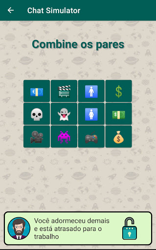 Após cada desafio de bate-papo, há um quebra-cabeça emojis, no qual você terá que encontrar os pares para desbloquear o próximo bate-papo.