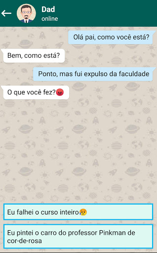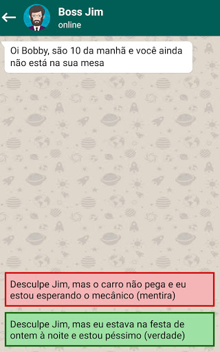 O Chat Master faz você enfrentar situações complicadas de bate-papo nas quais você terá que sair, como entrevistas de emprego, lidar com amigos exigentes, pedir a seu colega de classe para sair com você, brincar com seu pai, pedir um aumento para seu chefe e muitas outras situações mais complicadas ou engraçadas.