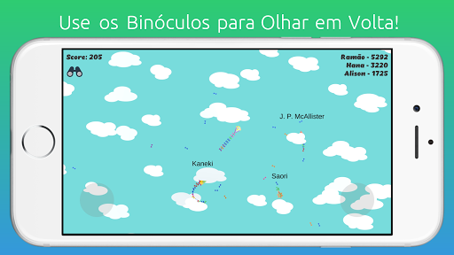 kite.io é um jogo de pipa no estilo snake(cobrinha). Sua missão é cortar a rabiola dos adversários e não permitir que cortem a sua! Colete mais fitinhas para fazer sua rabiola crescer e ficar gigante. Use o outro dedo para correr e apanhar seus oponentes ou fugir de um inimigo, mas se correr demais poderá perder sua cauda! Faça as missões para desbloquear novas pipas. Fácil de jogar e ótimo para passar seu tempo livre. Ideal para todas as idades!