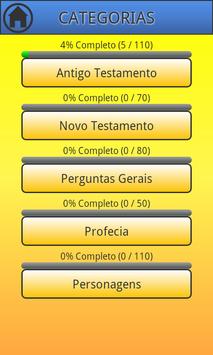 - Tem 5 Categorias à sua disposição: Antigo Testamento; Novo Testamento; Perguntas Gerais; Profecia; Personagens.