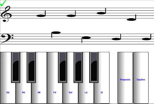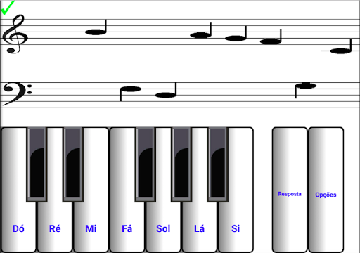 Aprenda a vista ler música em clave de sol e clave de fá. Notas acima e abaixo pauta. Span 6 oitavas. Aplica-se a qualquer instrumento. Notas gerados aleatoriamente e não limitado a um conjunto de repetição. Alternar entre claves para se divertir ainda mais. Resposta chave para iniciantes. Iniciantes definir o ritmo, limitando a oitava seção para aprender. Escalas maiores e menores (sustenido e bemol). Portugueses notas musicais Dó Ré Mi Fá Sol Lá Si. Som de piano pode ser silenciado. Tem pontuação de teste e estatísticas de desempenho. Ótimo para telefones. Perfeito para tablets.