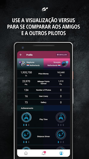 O app é exclusivo para jogadores que entraram na comunidade de GT Sport por meio do jogo no sistema PlayStation®4.