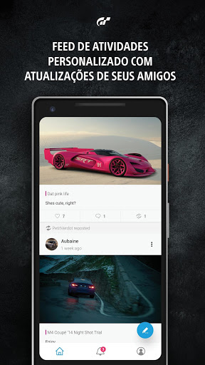 Milhões de jogadores de GT Sport estão tirando fotos incríveis de carros e locações, criando padrões legais e compartilhando momentos intensos das corridas. Aproveite tudo isso em seu FEED DE ATIVIDADES personalizado e Curta, Comente e Republique o que há de melhor. Publique uma ATUALIZAÇÃO DE STATUS para trocar ideias com seus Amigos e Seguidores.