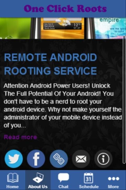 OneClickRoot приложения и обновления! Это "Root мой дроид" приложение имеет все необходимое, чтобы искоренить ваш телефон или планшет & как только ваш дроид коренится; выбрать из последней укоренившихся приложений. OneClickRoots.com сообщений в день новостей на Android укоренения. Почему бы не сделать себе администратор андроид устройства вместо вашего оператора мобильной связи и установить обновленную версию операционной системы вашего андроида? Звучит довольно большое право? Android опытные пользователи болели свои устройства, что дает им возможность удалять носитель установлен вирусы, настроить пользовательские интерфейсы, переключатель перевозчиков, повысить безопасность, установить пользовательские приложения и привязь бесплатно. Говоря простыми словами, "укоренения андроид» означает, что установка на "Су приложение", которая дает вам "корень" разрешения на устройство. "Суперпользователя" статус дает вам повышенных разрешений, чтобы вы могли изменить почти любой части операционной системы вашего андроида.