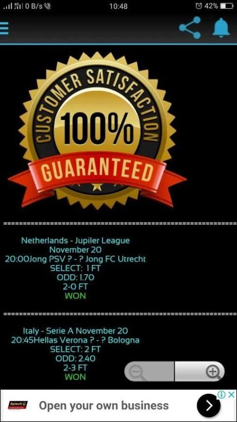 Мы имеем дело с реальными фиксированными спичками. Загрузите наше приложение сегодня и получить лучшее от наших уверенных источников