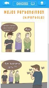 Aplikasi ini terdapat materi serta contoh,3 permainan, dan komik dengan 15 cerita.
