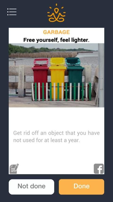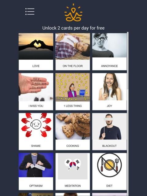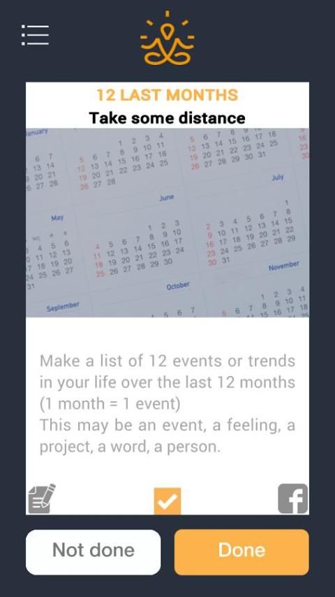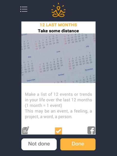 -1 Упражнение предлагается каждый день: интроспекции упражнения, мини проблемы уверенности в себе, чувствовать себя хорошо миссии, отпуская упражнения, управление эмоциями, и чувство собственного достоинства, уверенность в себе, остановить чувство вины, благодарности, медитация, comtemplations, вдохи, осознанность и т.д.