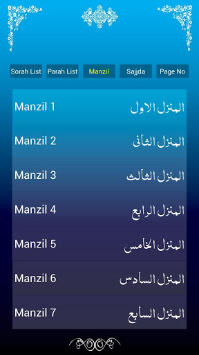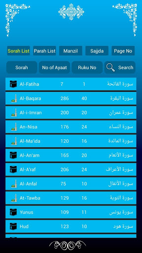 * Advanced navigation using Go to page number, Parah , Surah, Manzil and Sajda index helps to navigate easily.