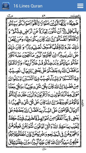 16 Lines Quran for Huffaz in old style. Lines are not marked as under line and it's free to use without any Ads.