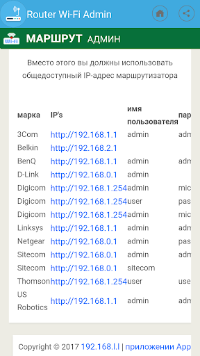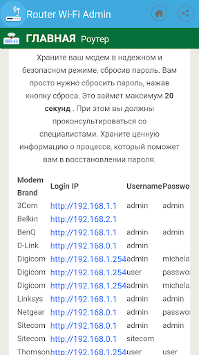 Все приложения для модемов и маршрутизаторов admin и ip address info.