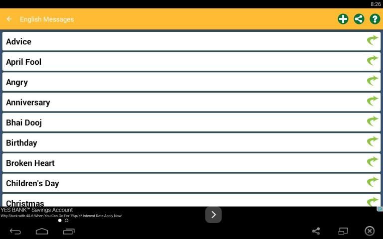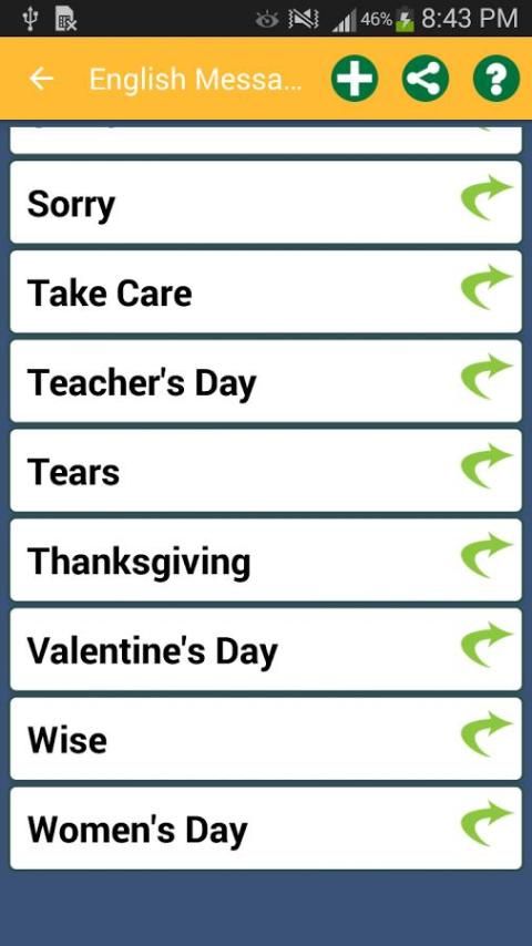 إرسال رسالة الحالة الإنجليزية إلى شخص خاص ولكنها تفتقر إلهام استخدام الرسائل للوسائل الإعلام الاجتماعية, وهي أكبر مجموعة من الانترنت / غير متصل التطبيق مع فئات مختلفة من اللغة الإنجليزية SMS, نكت والرسائل. هذا التطبيق هو مرنة بما فيه الكفاية لتبادل الرسائل إلى أي وسائل الاعلام الاجتماعية مع خيارات المشاركة