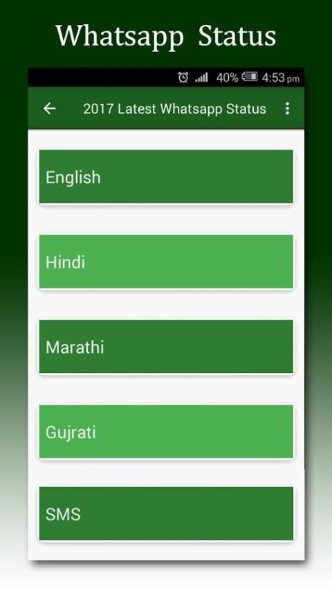 Лучшее приложение и огромная коллекция статусов на все случаи жизни для статуса быстрого обновления в социальных сетях, а также для любого приложения чата и т.д. В этом большом 2017 года Whatsapp состояния приложения имеют каждый категории статуса как смешной статус, Любовь статус, статус Новый год, Грустный статус, Хороший статус, статус Человек, Женщина статус, Clever состояние, состояние жизни, статус Шутка, статус друга и многое другое состояние вон там.