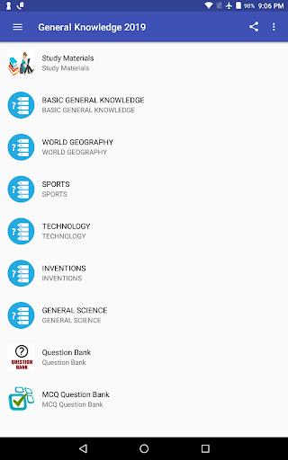 2019 Общие знания (GK) Offline App предоставляет вам доступ к вопросам по разным категориям с регулярными обновлениями.GK работает полностью оффлайн, чтобы дать вам легкость, чтобы прочитать его в любое время в любом месте.