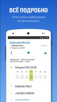 - смотреть время работы, телефон, сайт и соцсети организаций;