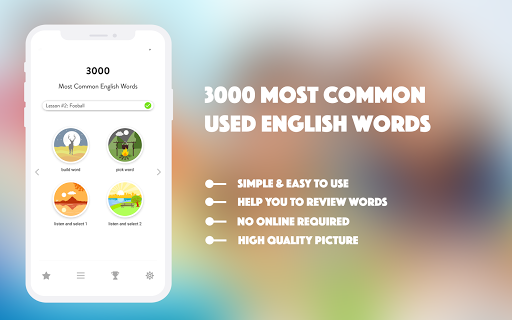 При повторных методах обучения и рефлексам приложение поможет вам овладеть 3000 наиболее часто используемыми английскими словами в течение 30 дней.