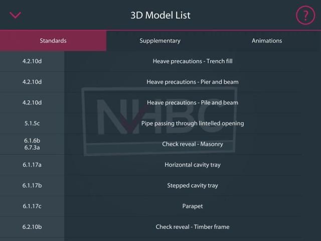 NEW FOR 2017! To complement the existing App, a range of additional features have been added, including :: FOUR NEW 3D MODELS :: THE VERY FIRST ANIMATION. Clarifies the installation process of the stepped cavity tray detail :: TECHNICAL HELPLINE. Giving users a direct link to NHBC’s Technical Experts (telephone or email contact form) :: QUICK LINKS. Instant access to NHBC Standards, Technical Guidance Documents, NHBC Risk Guides and NHBC Technical Extra :: Compatible with Android 4+