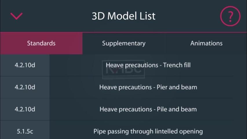 3D-просмотра занимает десятки 2D иллюстраций из Стандартов NHBC и представляет их как полностью интерактивных и аннотированные 3D моделей. Сортировать по главе и части стандартов NHBC, в котором они появляются, каждый 3D модель поддерживает поворот, масштабирование и панорамирование функции.