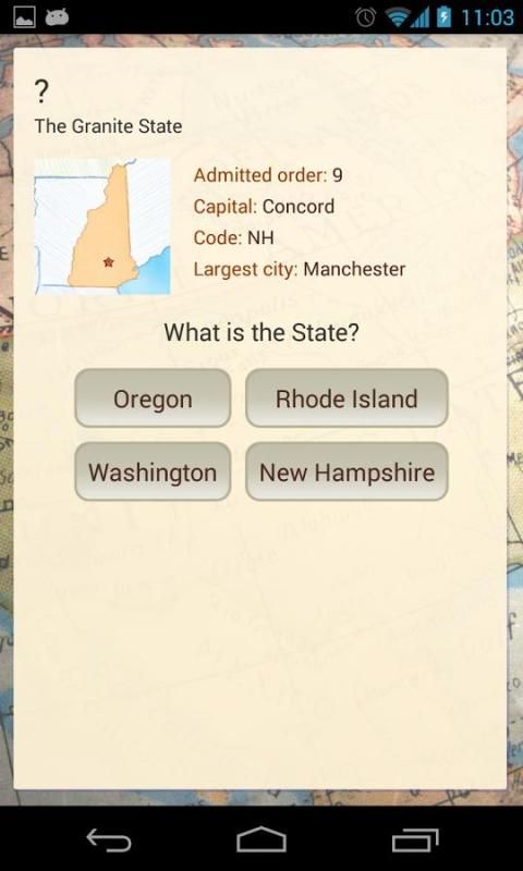 Для каждого состояния вы также узнаете, население, флаг, самый большой город, девиз, состояние птицы, площадь и высокая точка! Проверьте себя в режиме викторины. Интерактивные карты облегчает поиск государство.