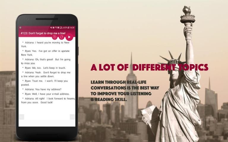 Lessons are prepared in hundred of daily topics help you get familiar with native speaking and pronunciation.