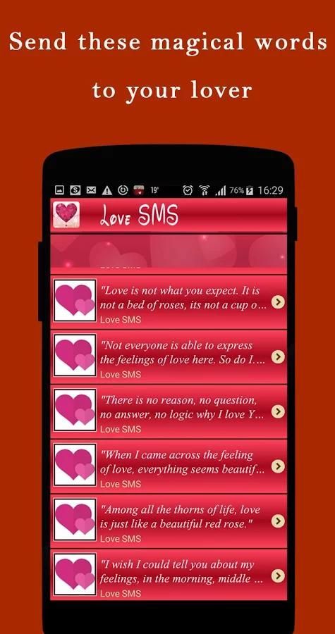♥ Любовь SMS - Выражайте свои чувства любви и сострадания, посылая прекрасные SMS на них любовь. Любовь и забота снимает дистанцию двух сердец, проверка и лучшие Любовь коллекции SMS и отправить его на вашу любовь. Не стесняйтесь поделиться вашей любви SMS, который вам нравится. Найти 2017 года самая большая коллекция милых сообщений English любовных смс-сообщений в приложении сообщений Романтическая любовь.