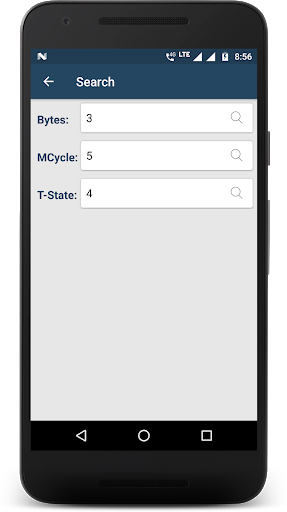 - Search instructions by Bytes or Machine Cycles or T-State required for execution of the instruction.