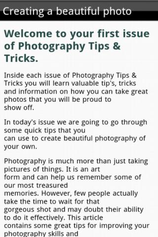 It is a truth that 10,000+ users downloaded Photography Tips and Tricks Free latest version on 9Apps for free every week! More features are involved in this new version. This hot app was released on 2013-06-13. To read more info about mobile apps, you can click on 9Apps.