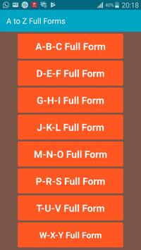 A to Z Full Forms provide you all type of acronyms full forms. This is the library of all type (A to Z) full form with friendly interface, small size, easy to use absolutely free app. This app provide part by part (A to Z) all type of Acronyms to Full Form, so easily get what do you want to know about full form. This app basically create for India, so you get Indian all type of full forms and yes very helpful in examination and get knowledge about shortcut. We often use some words in our daily life, but we don't know their full forms.