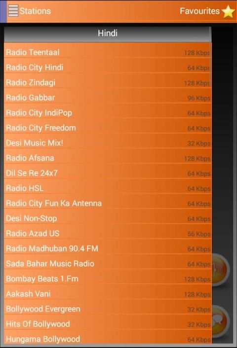 Радио Teentaal, Radio City Хинди, Radio City IndiPop, Радио HSL, Radio City Fun Ka Антенна, Дези Non-Stop, Болливуд Evergreen, хиты Болливуда, Болливуд радио и на последующий период, Hungama Болливуде, Радио Gabbar, Шах Рух Хан радиолюбителям, Hum FM ОАЭ, Bollybop, KFWB Дези 980, Тамбура хинди, Amor FM, Таал радио, Радио Gabbar, Taranga Радио, Awaz FM, Радио Jamshedpur, Радио 4 FM, Sternchen Болливуд радио, Радио Sharda 90,4, Карри радио хинди, Радио Ujala, Город 101,6 FM, Масала радио, радио специй Box, радио специй Box, индо американского радио, Дези World Radio, All India Radio Радуга, All India Radio Gold, All India Radio Vividh Бхарти, DD Новости, NDTV Индия, NDTV 24X7, NDTV Прибыль, Радио Зиндаги, Радио Азад США, Aakash Вани, Ходжи Radio 1 и многое другое.