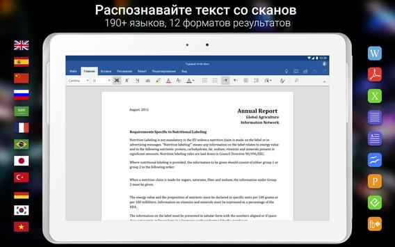 Используйте свой Android девайс с ABBYY FineReader для оцифровки бумажных документов, соглашений, квитанций, журнальных статей, книг, заметок и превращайте сканы в редактируемые документы в форматах Word, Excel, PDF с возможностью поиска. Идеально подходит как для малого бизнеса, так и для частных лиц.