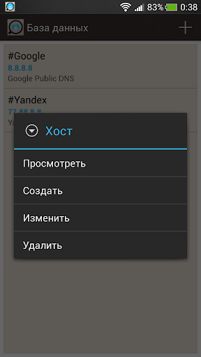 * Внутренняя база данных SQLite для адресов хостов