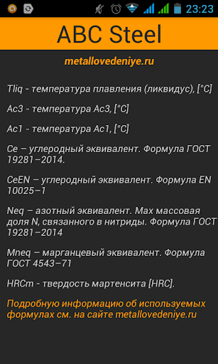 Android-приложение ABC Steel («Android Based Calculator of Steel Properties».), позволяющее осуществлять расчет критических точек и свойств стали по ее химическому составу.