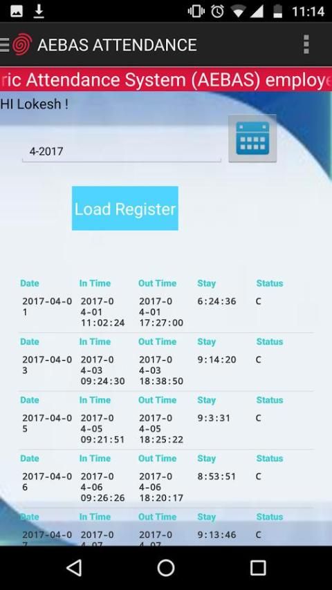 Цель этого приложения AEBAS является просмотр собственного профиля, регистра посещаемости, применяется отпуск, вид группы по мониторингу и есть члены и посещаемость. Текущее приложение ограничивается только работником Дели.