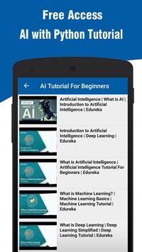 Artificial intelligence is the intelligence demonstrated by machines, in contrast to the intelligence displayed by humans. This app covers the basic concepts of various fields of artificial intelligence like Artificial Neural Networks, Natural Language Processing, Machine Learning, Deep Learning, Genetic algorithms etc., and its implementation in Python.
