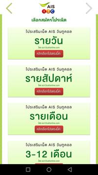 1.เข้าแอปเลือกโปรเน็ตที่ต้องการ โดยท่านสามารถอ่านรายละเอียดของแพ็กเกจเน็ตเอไอเอส ก่อนตัดสินใจเลือกสมัครโปรเน็ตตามความต้องการ เลือกเองอย่างอิสระ แบบส่วนตัว