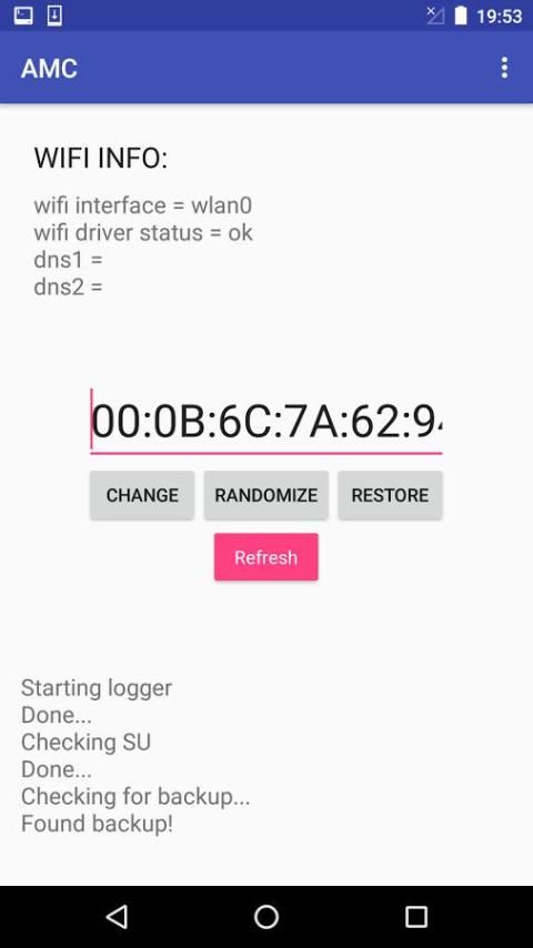 AMC (Advanced Mac чейнджера) является корнем приложение, которое может изменить MAC-адрес вашего Android устройства, основаны от NMAC по ViRb3.