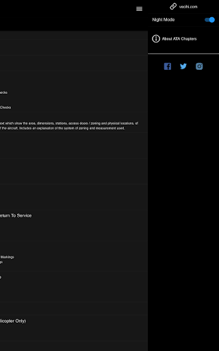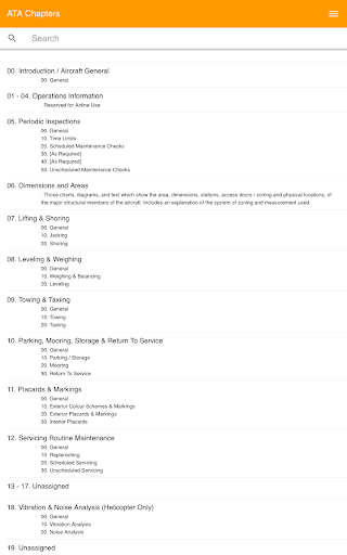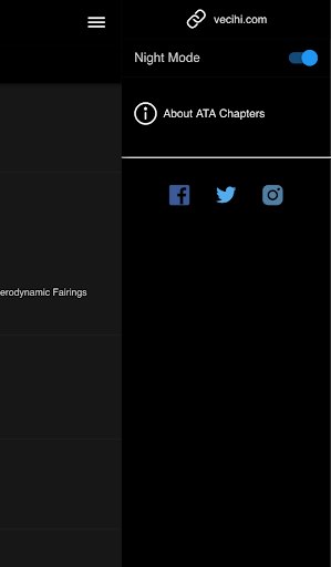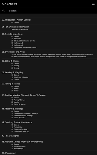 Вы можете либо поиски, либо прокручивать список ATA и найти номера ATA систем с главами и суб-главами.Дневной или ночной режим доступен в зависимости от вашей среды использования.Он запомнит ваш выбор на следующем запуске.