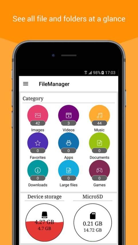 ★ Файловый менеджер будет анализировать использование памяти, обнаруживать большие файлы, файлы избыточности и вновь созданных файлов. Поэтому пользователи могут иметь смысл использование дискового пространства, чистый файл нежелательной и другие файлы & папки, которые больше не нужны, без особых усилий.
