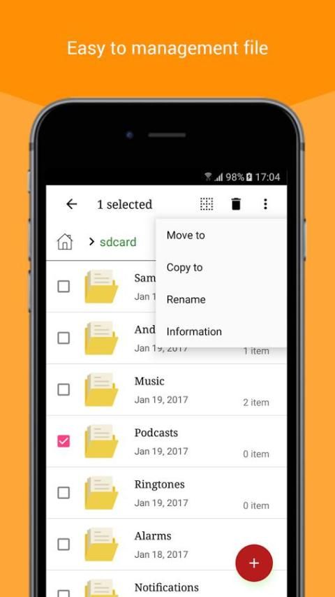 Менеджер файлов является полным файловый менеджер, который позволяет обрабатывать любой файл на вашем Android устройстве с помощью чистой и интуитивно понятный интерфейс. Кроме того, можно отдельно обрабатывать библиотеки изображений, музыки, видео, документов, а также переименовывать, удалять, перемещать, архивировать и отправлять с помощью всего нескольких нажатий.