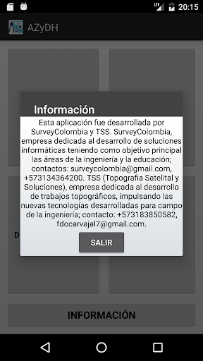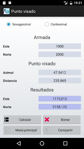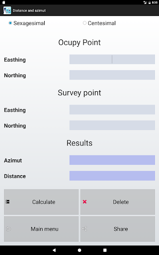 AZ & DH, азимут и расстояние, является приложением, разработанным в качестве поддержки топографов и / или инженеров, которые включают в себя калькулятор с основными тригонометрическими функциями и преобразованием между различными угловыми узлами;Он предоставляет практический инструмент для расчета плоских координат одной точки от другого, известный с использованием расстояния и азимута между ними;инструмент для расчета расстояния и азимута между двумя точками от восточных координат и к северу от указанных точек;и инструмент для расчета тригонометрического уровня точки от другого известного;Он также предоставляет возможность поделиться расчетными данными через различные инструменты, доступные на нашем мобильном устройстве, а также на опцию использовать центсичные и половые углами.
