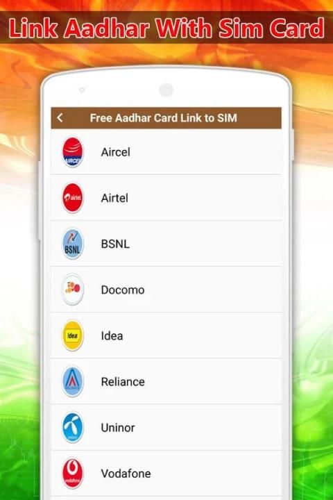 Недавно Департамент телекоммуникаций (DOT) проинструктировал все индийские оператор связи проверить все мобильные номера, связывая ее с Aadhar карты. В настоящее время приложение поддерживает оператор связи, как Airtel, Aircel, идея, Vodafone, Uninor, Tata Docomo, BSNL и Reliance для того, как связать Адхар с сим процессом.
