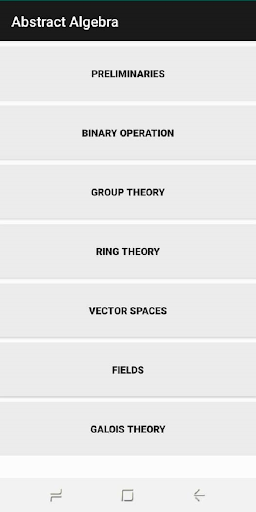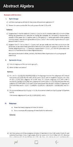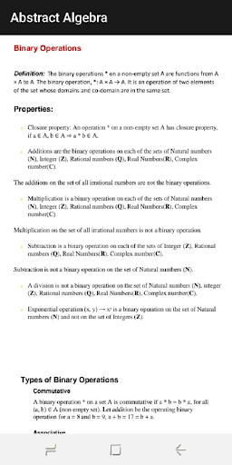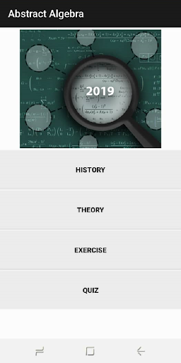 This application contains history of modern algebra and mathematicians, theories of subject, exercises with/without solutions and quiz from theories. This app can serve for users as a offline course and it is very convenient to use.