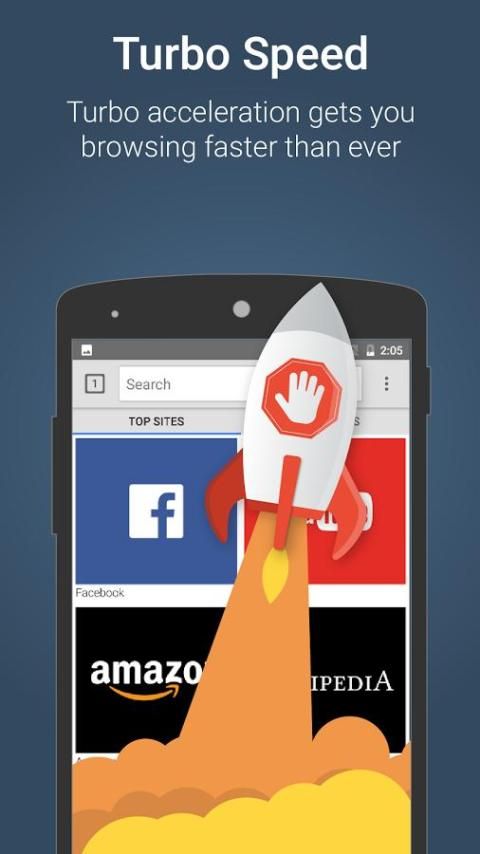 Получить Ad-Free опыт работы с AdBlocker Turbo браузер. Нет объявления = Нижний план данных.
