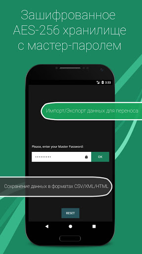 ★ Зашифрованное хранилище данных мастер паролем (AES-256)
