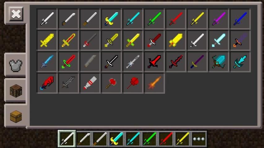 Мод добавляет в Minecraft Pocket Edition MCPE более ста различных типов мечей, которые имеют свои уникальные способности, уникальные рецепты крафта и невероятно красивые текстуры. Уже многое время в Minecraft идет борьба с мобами, если вы находитесь в режиме выживания, так почему бы не обновить и не пополнить свой инвентарь, новыми, крутыми мечами, чтобы сражения с мобами было еще более захватывающим.