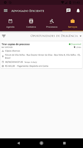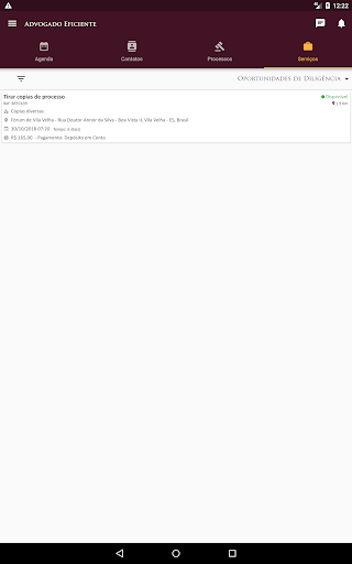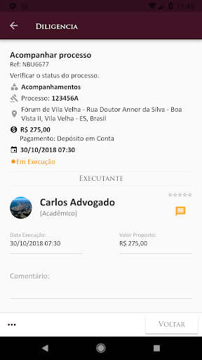 • Финансовое управление: финансовый поток с обзором и централизованным или по процессу. Запросы будут представлены как «услуги» для других юристов и юридических наук, которые находятся в этом районе. их просьбы, и если они заинтересованы, они могут ответить на их запрос с предложением стоимости и срока. Цены предложены в соответствии с таблицей OAB каждого региона.